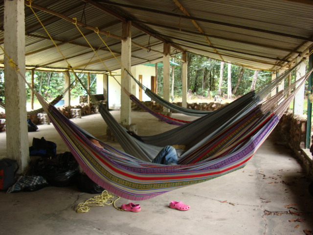 ↑ ベースキャンプには、こんな感じのかろうじて雨をしのげそうな小屋がひとつ。