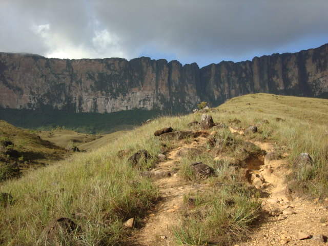 目の前にロライマ山の巨大な岩壁が大きく広がってきました。