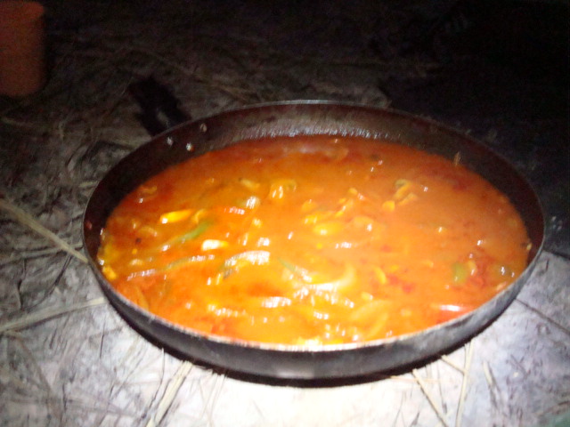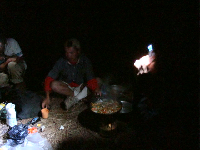 リカルドと、ポーターのインディアンたちが夕飯の準備をしてくれています。