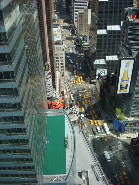 窓から下を覗くと、NYの風景らしい黄色いタクシーがずらりと見えます。
